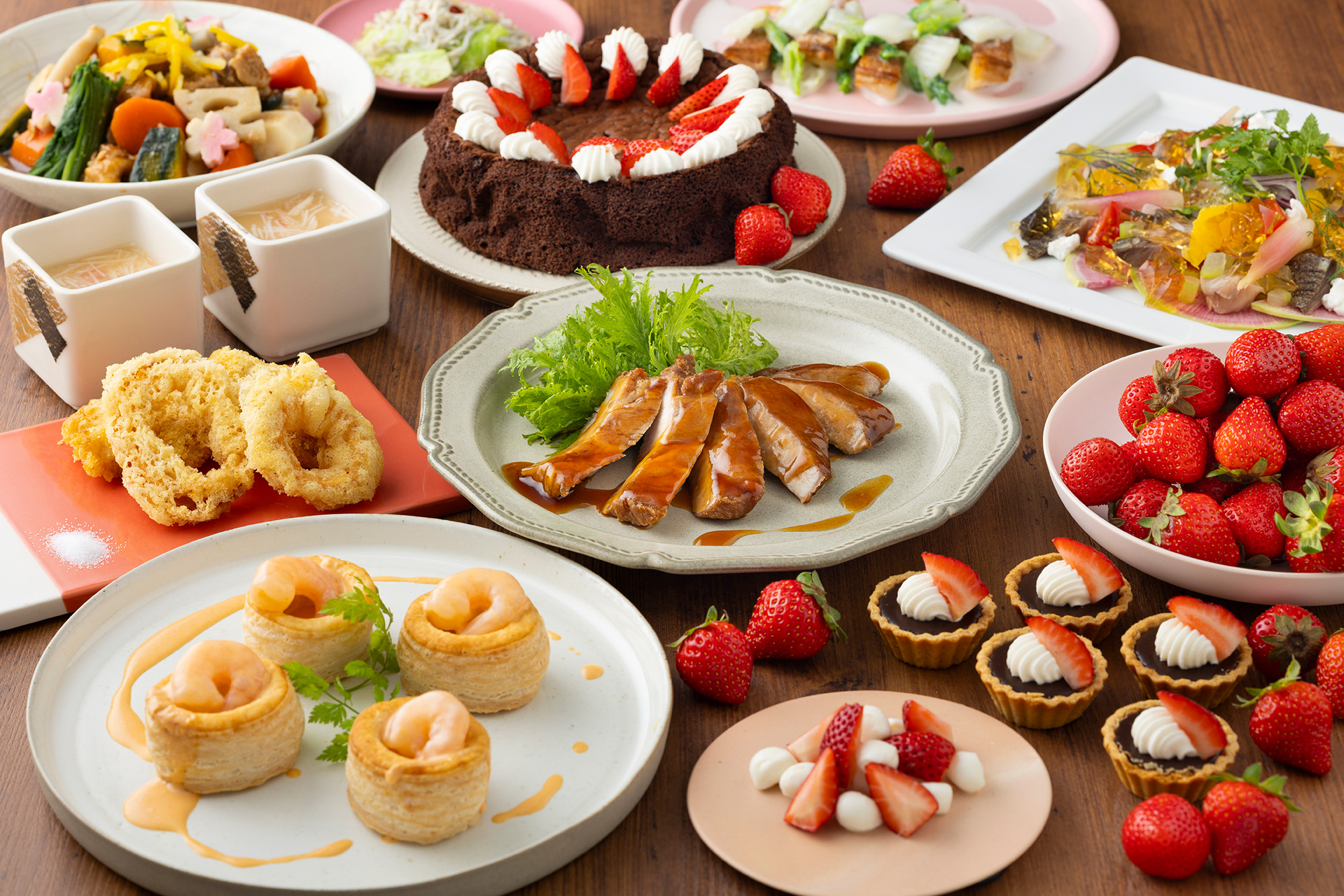 お一人様でもお気軽にご賞味いただける単品メニューや お料理と会話をゆっくり楽しめるオーダーバイキングやコースメニューをご用意しております。
