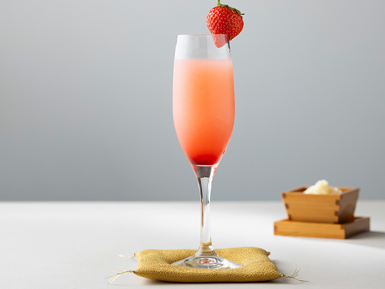 やさしい甘酒と辛口のスパークリングワインのハーモニーにいちごが彩りを添えます。