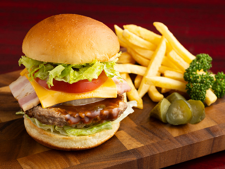 ベーコンのソテーとフレッシュレタス、トマトの相性が人気の「BLTバーガー」。バンズ、パテ、一つひとつの素材にこだわった「ホテルバーガー」を是非一度ご体験ください!